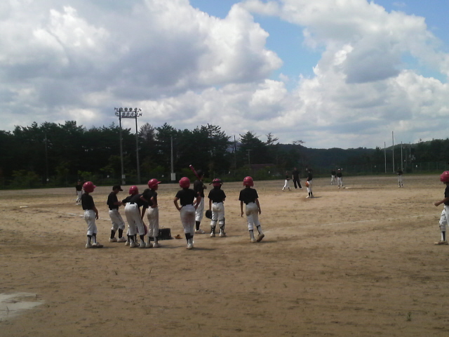 13時から三次から粟屋スポーツ少年団を招いて練習試合。第二試合は来週にジュニアカップを控えて5年生中心のチームで戦っている最中、どしゃぶりの雷雨で試合はあえなく中止。片付け最中に須毛田が蜂にさされ、雨の中、旅行村職員の方の先導で豊島ママの運転で近くの病院へ(豊島ママ感謝)。診察の結果、異常なくそのまま待望の焼肉大会に合流!